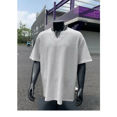 Plus Size 240g Double Yarn Cotton Crew Neck T-Shirt, Relaxed Fit, Drop Shoulder, Classic Solid Style