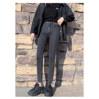 Spring women's jeans, high waisted and small leg pants, slimming and versatile, elastic and tight fitting cropped pants, pencil pants