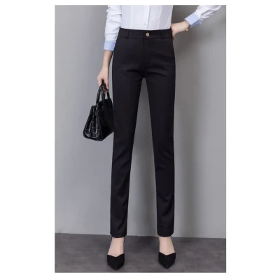 Spring women's cropped pants, small straight leg commuting professional suit pants, slimming and versatile elastic casual pants