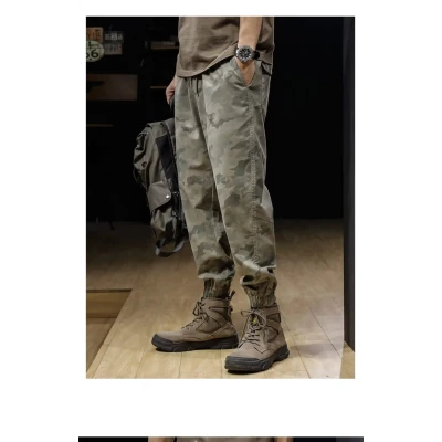 American retro multi pocket work pants, men's loose and trendy military style ankle pants, outdoor sports pants
