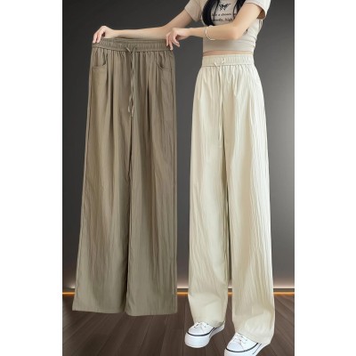 Summer thin ice silk wide leg pants, women's hanging casual pants, loose and slimming, high waisted straight leg floor length pants