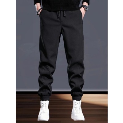 Winter flannel casual pants for men, loose sports pants, warm and versatile ankle binding pants, autumn and winter pants