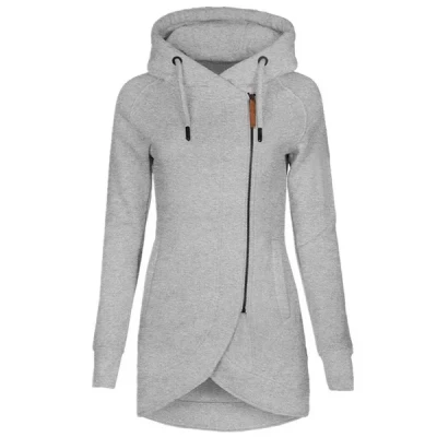 Women Hoodie Jacket Oversized Sweatshirt Coat with Oblique Zipper and Pockets