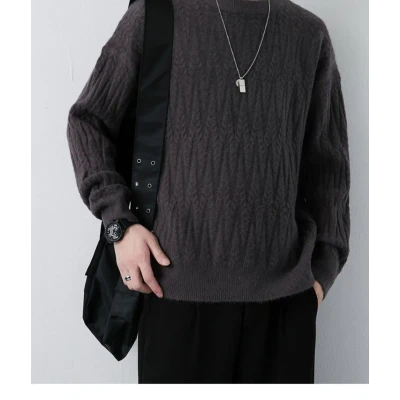 Men's winter sweater, knitted sweater, loose and trendy printed pullover, warm and versatile top, casual outerwear