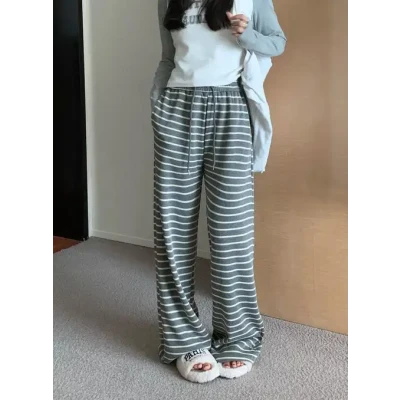 New autumn and winter woolen pants for women, loose and slimming, versatile and lazy style, knitted wide leg pants