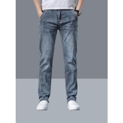 Men’s Tencel Stretch Jeans – Relaxed Fit, Straight Leg, Business Casual Comfort Pants for All-Day Wear