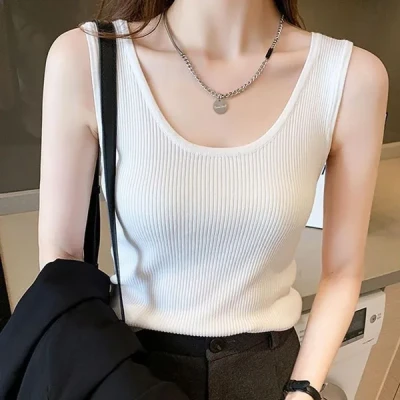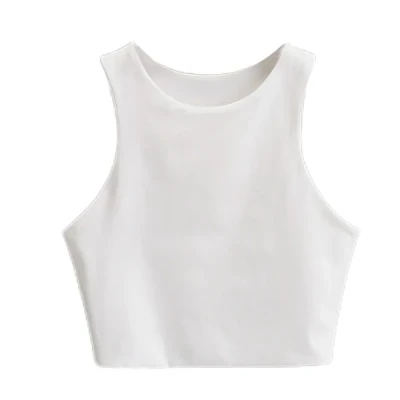 Women's Summer Round Neck Slim Fit Sleeveless Crop Tank Top Basic Solid Color Workout Racerback Basic Tee Shirt Vest