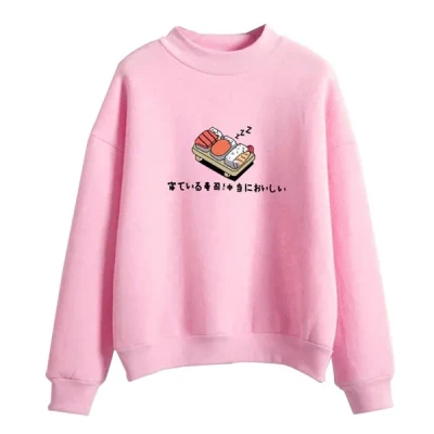 Womens Winter Hoodies Candy Color Cartoon Kawaii Sushi Japanese Print Sweatshirt