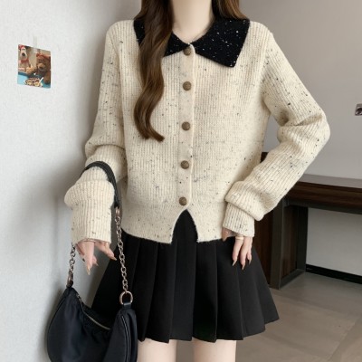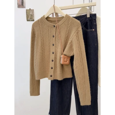 Spring and Autumn Women's Small Fragrant Knitted Jacket Short cardigan Top Versatile Look Thin Gentle Style Sweater