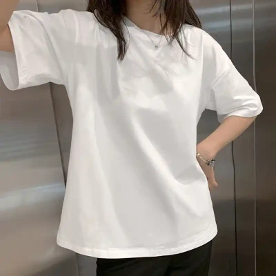 Summer heavyweight pure cotton white T-shirt women's ins style loose top base shirt couple's basic minimalist tee