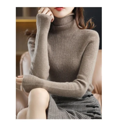 Winter semi high neck sweater for women, knitted base sweater for slimming and versatile warm woolen sweater top