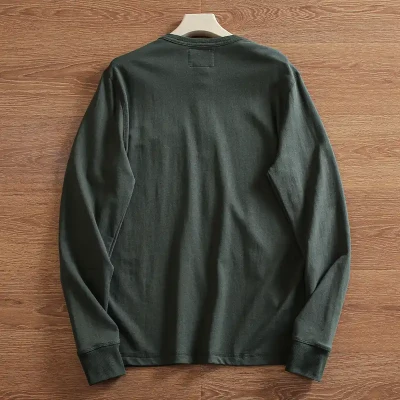 Men's spring and autumn pure cotton Henry collar long sleeved T-shirt, retro casual slim fit base shirt, minimalist top