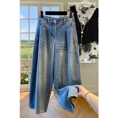 High waisted straight leg jeans for women in spring and autumn, slim and versatile, retro wide leg pants, loose and hanging, floor length pants, ins