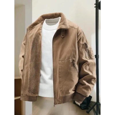 Men's winter thick lamb plush jacket, loose casual trend warm top, workwear jacket, men's clothing