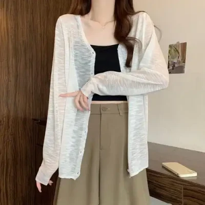 Summer thin knitted cardigan, women's air-conditioned shirt, sun protection jacket, breathable versatile top, short jacket