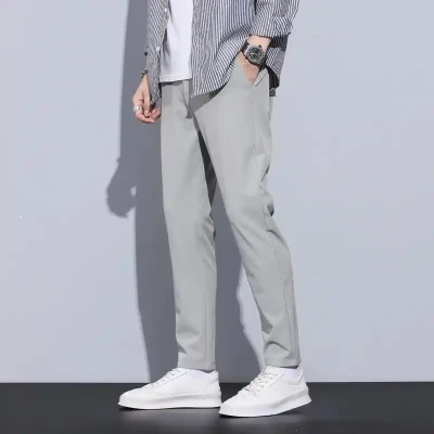 Summer thin casual pants men's ice silk breathable cool versatile straight leg pants loose sports