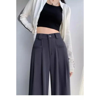 Spring and Autumn Women's Paper Bag Pants, High Waist, Skinny and Wide Leg Pants, Versatile, Casual, Hanging, Suit Pants