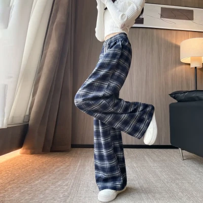 New autumn and winter plaid pants for women's casual loose straight leg pants, slimming and versatile, student ankle binding sports pants
