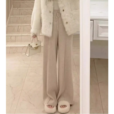 New autumn and winter knitted wide leg pants for women with a lazy style, loose and slimming look, casual pants with a sense of drape, versatile for outdoor wear