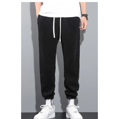 Winter flannel casual pants for men, loose sports pants, warm and versatile ankle binding pants, autumn and winter pants