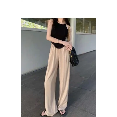 Summer thin ice silk wide leg pants, women's hanging casual pants, loose and slimming, high waisted straight leg floor length pants