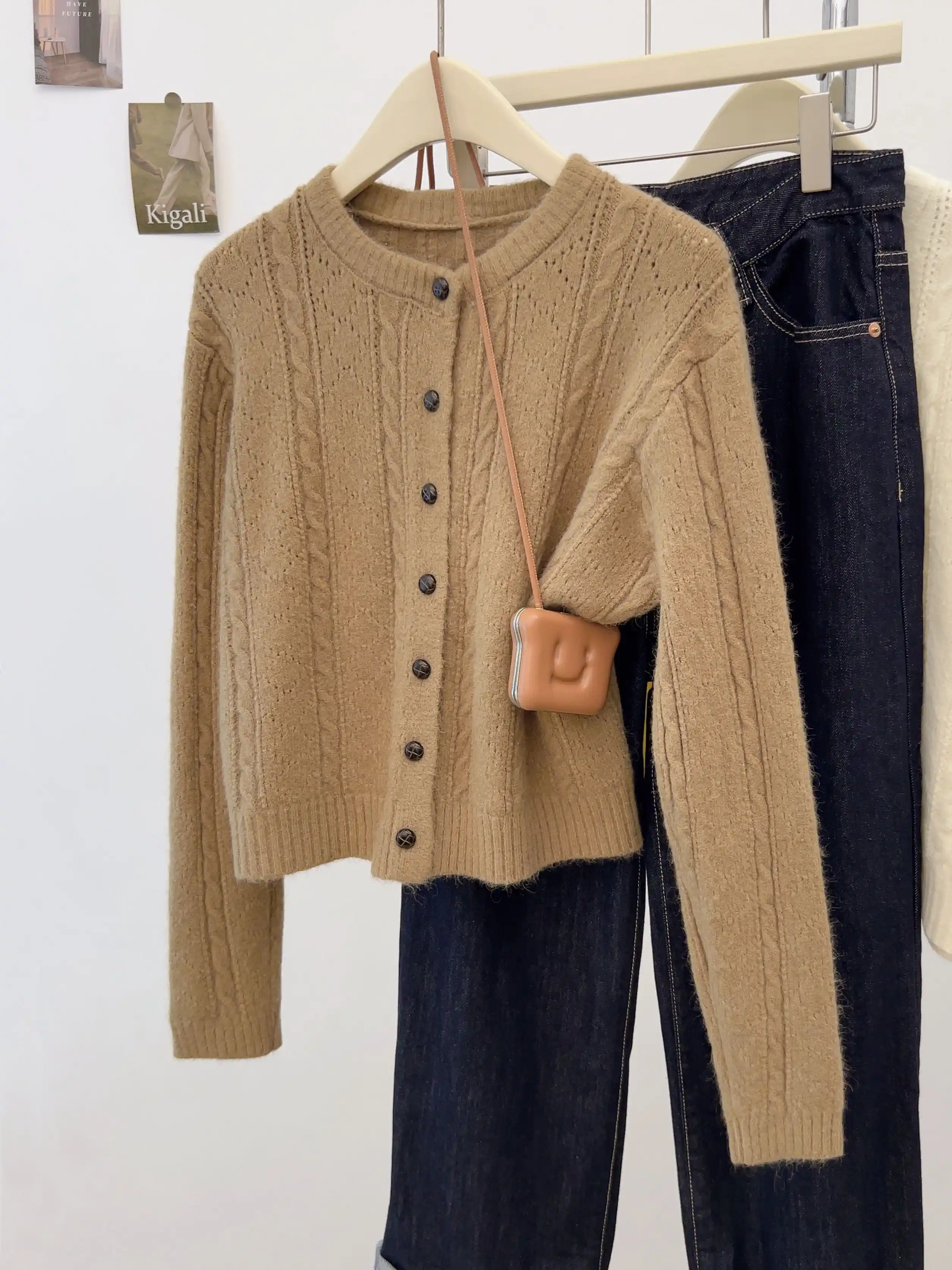 Winter retro Fried Dough Twists sweater women loose lazy wind wear sweater thin versatile Christmas top